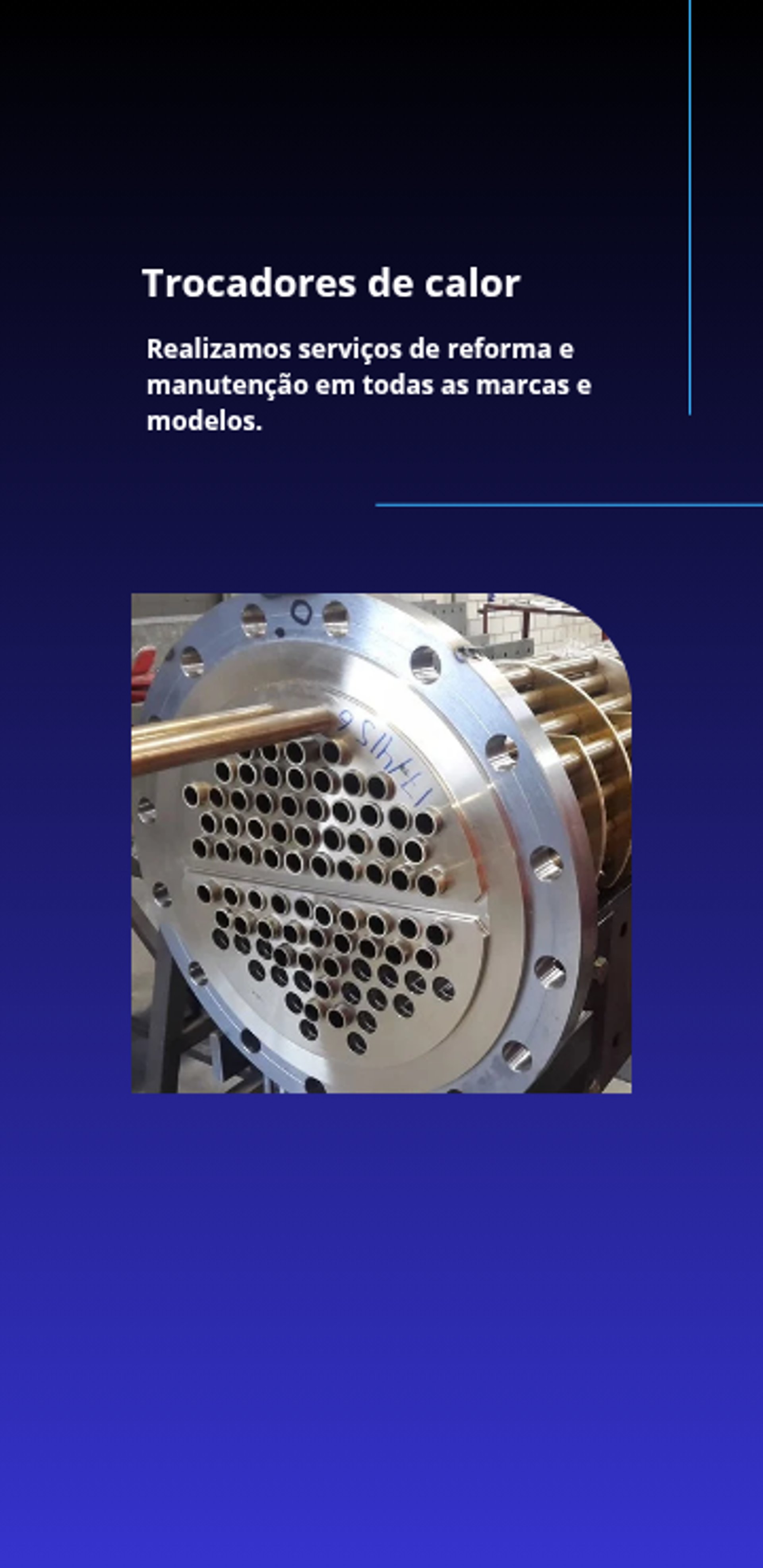 Com mais de 20 anos de experiência, atuamos na reforma e manutenção de trocadores de calor, realizando grandes projetos, desenvolvendo soluções personalizadas e resolvendo problemas de alto nível técnico.